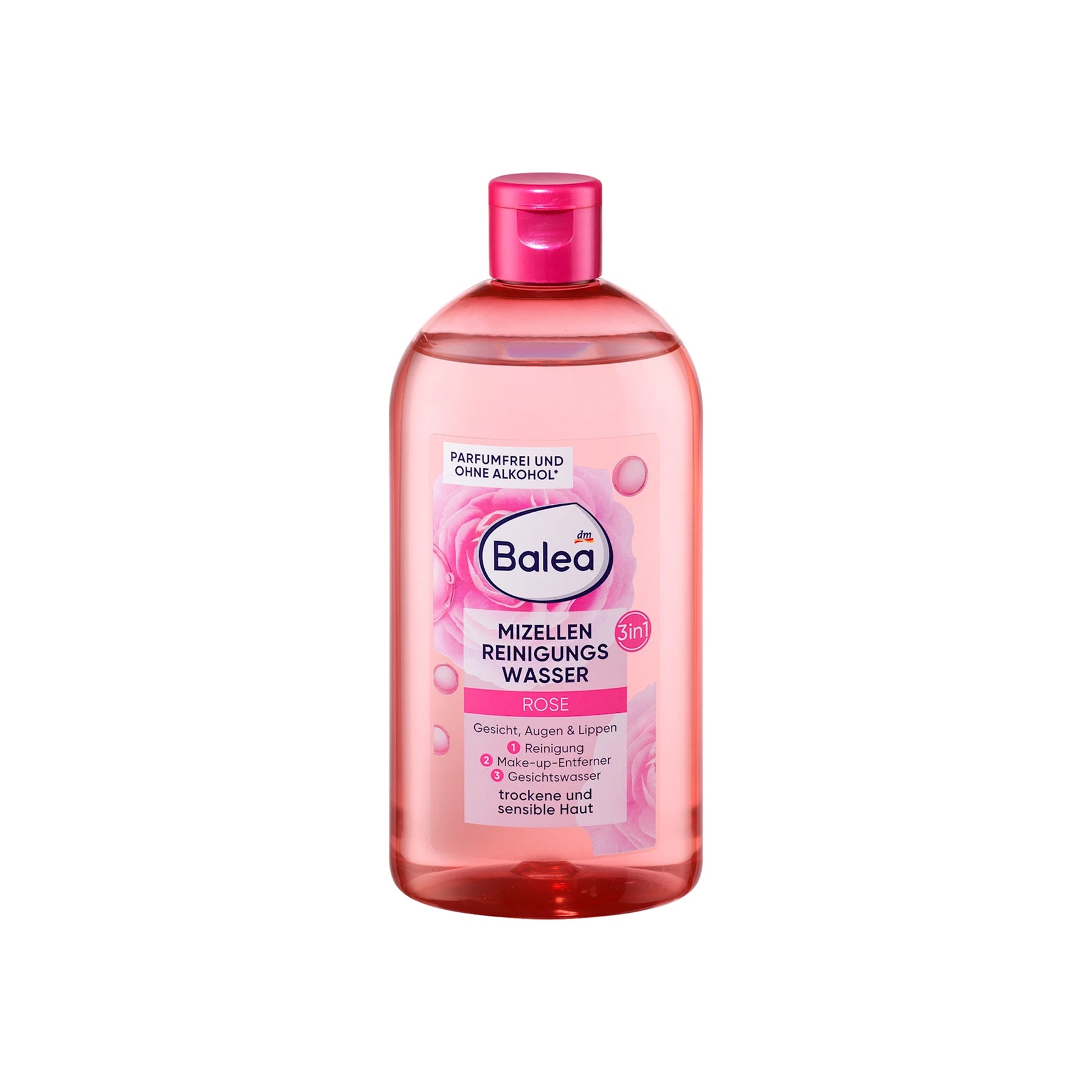 The Balea Micellar Cleansing Water Rose is a gentle 3-in-1 solution that removes makeup, cleanses, and tones the skin in one step.
