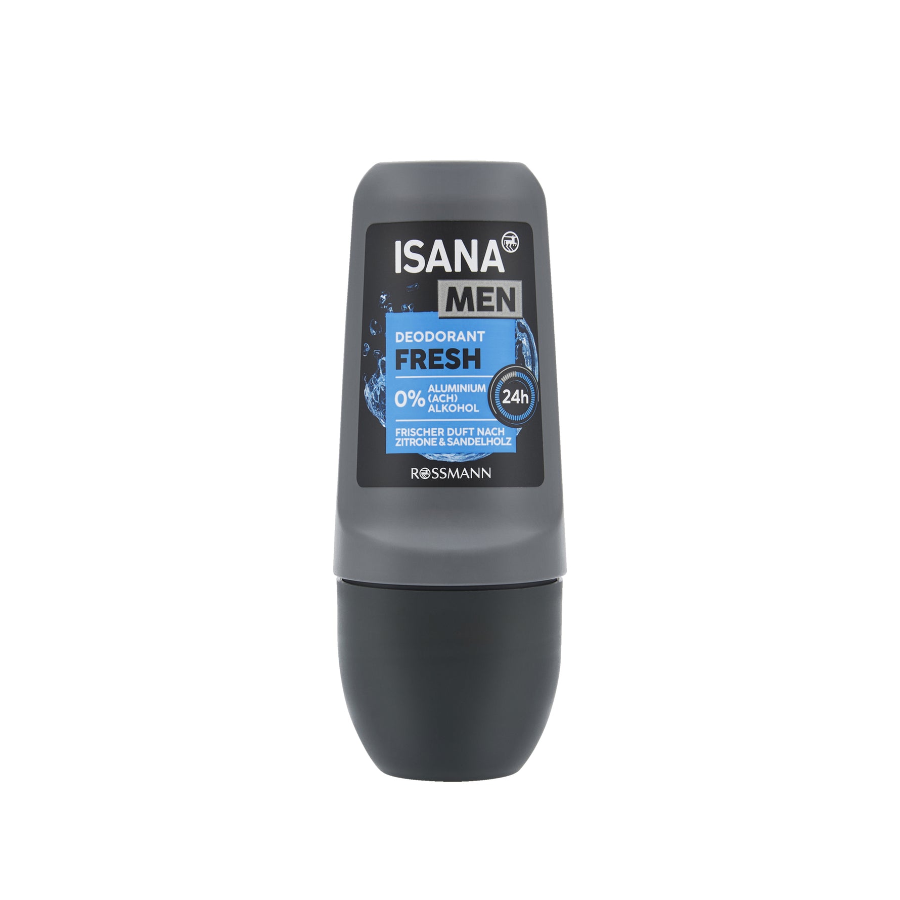 The ISANA MEN Deodorant Roll-On Fresh provides 24-hour reliable protection against body odor with an invigorating scent of lemon and sandalwood.