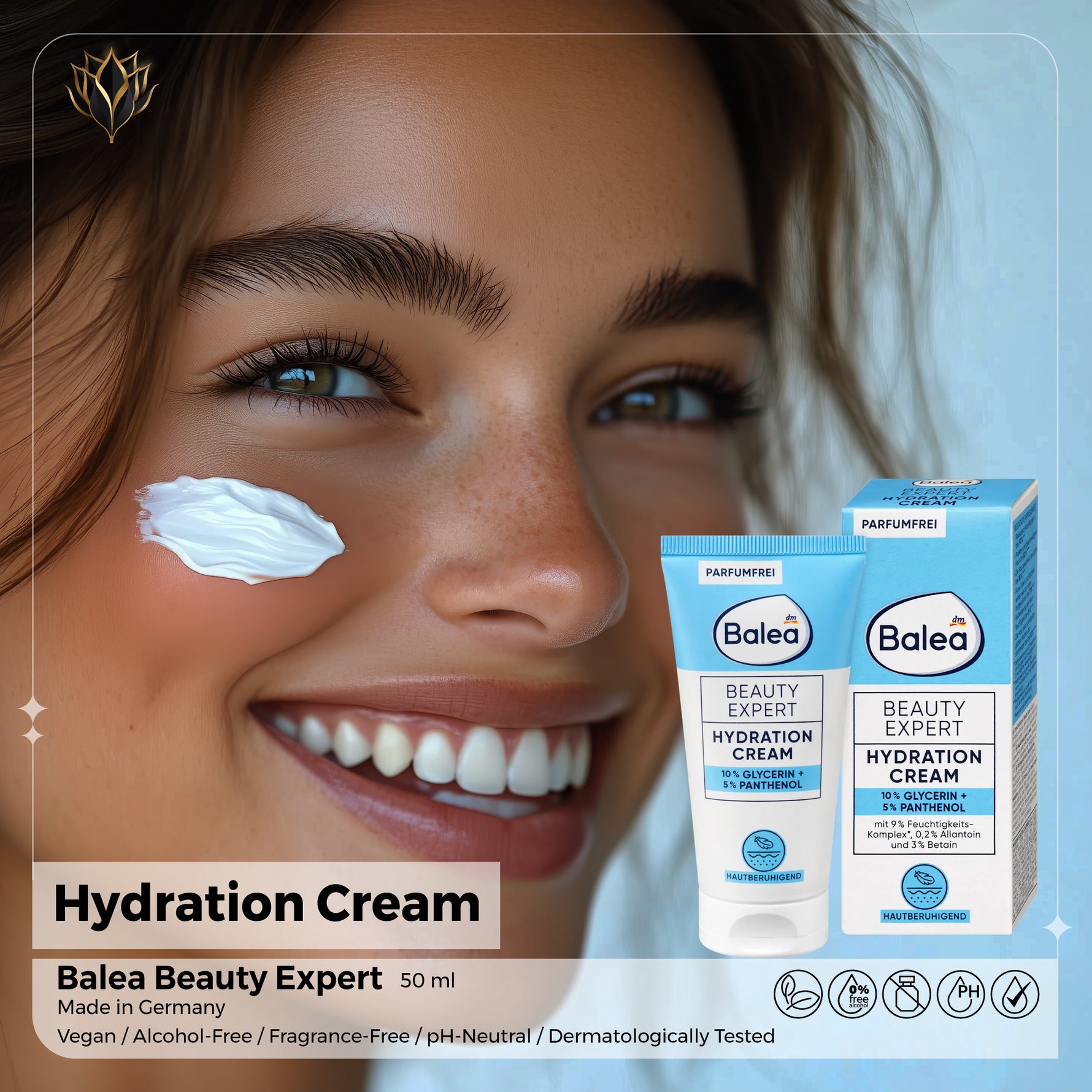 The Balea Beauty Expert Hydration Cream delivers deep, long-lasting moisture while protecting and balancing your skin barrier.