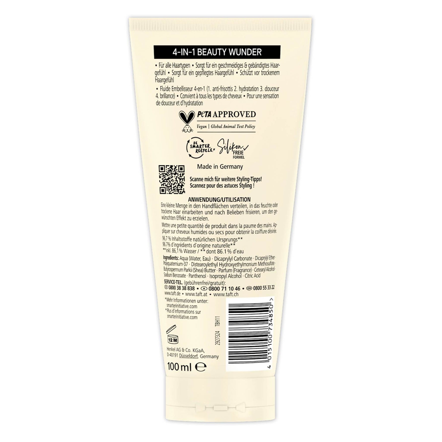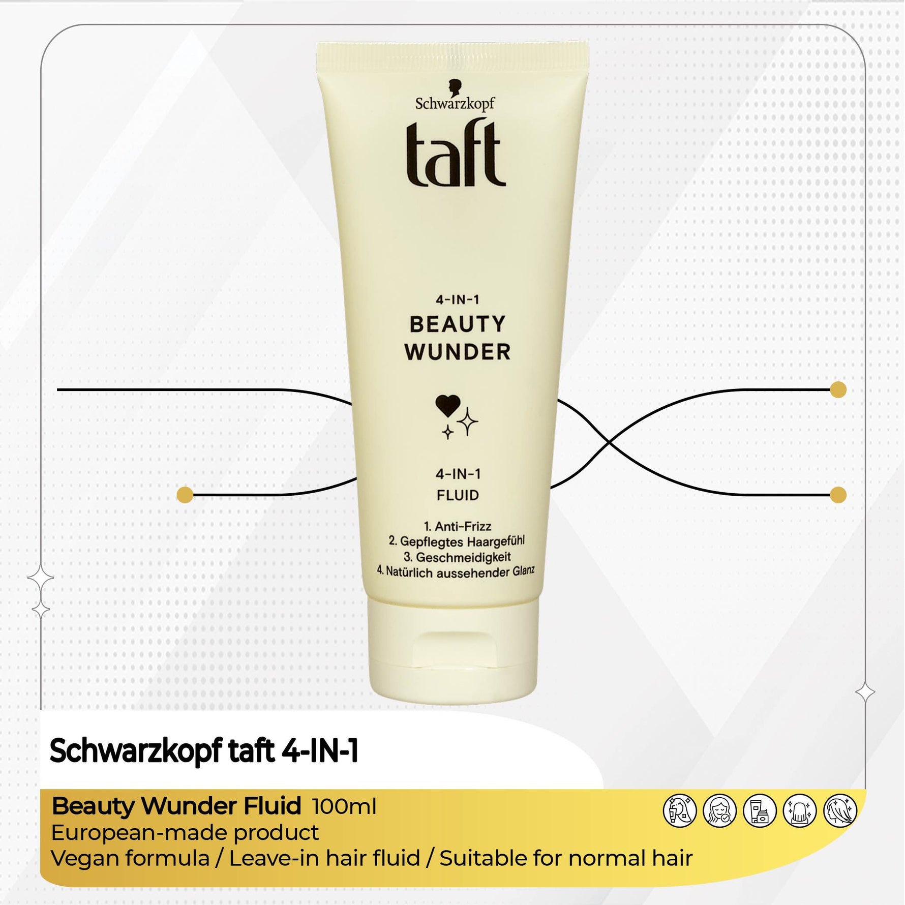 The Schwarzkopf taft 4-IN-1 Beauty Wunder Fluid delivers instant care, smoothness, and shine in one lightweight leave-in formula.