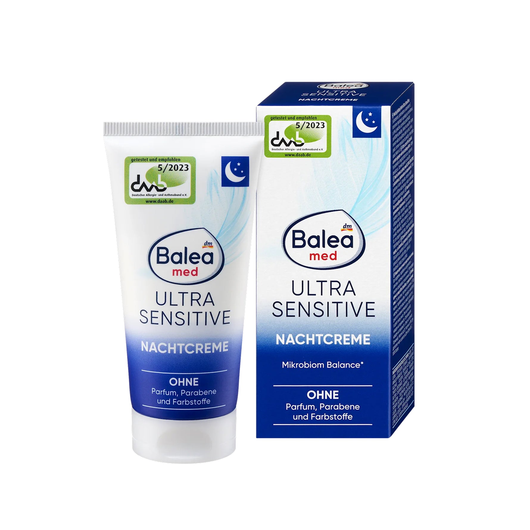 The Balea Med Ultra Sensitive Night Cream offers gentle, dermatologically tested hydration for sensitive and reactive skin.