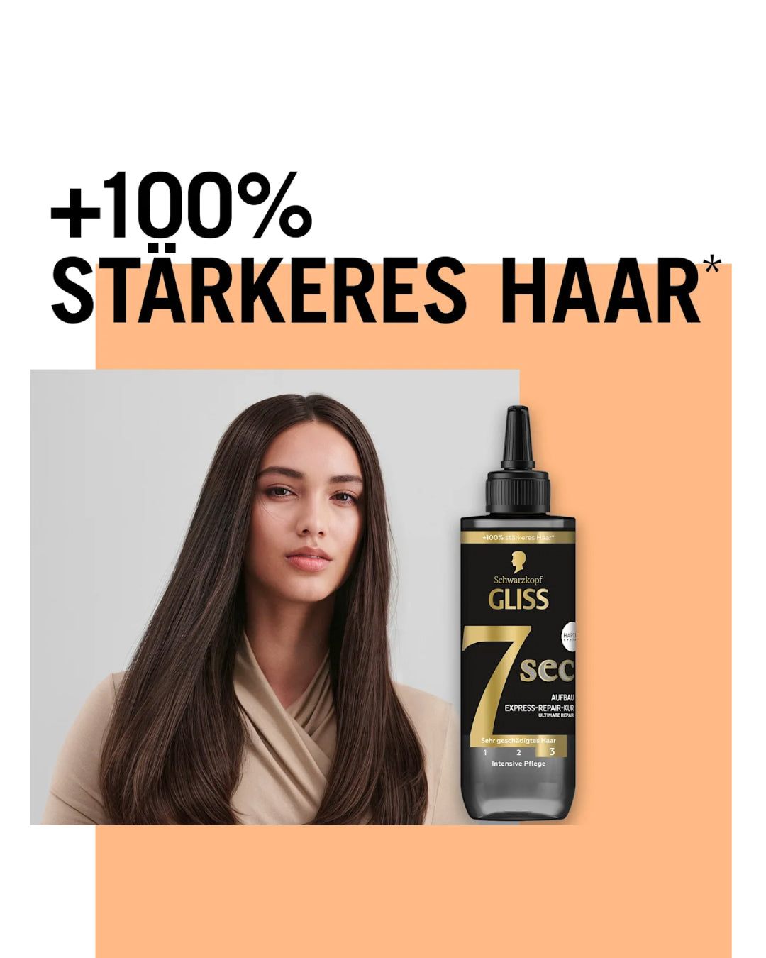 The Schwarzkopf GLISS 7Sec Express-Repair Ultimate Repair transforms damaged, dry hair in just 7 seconds.